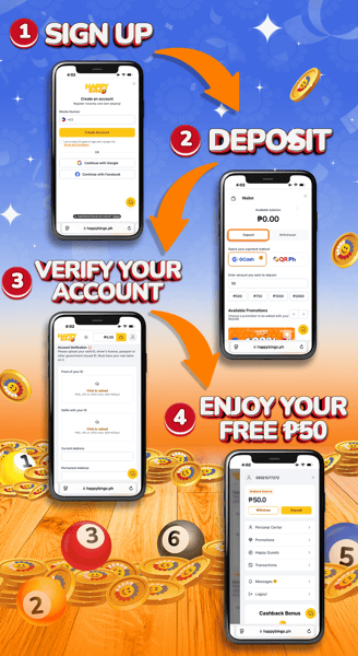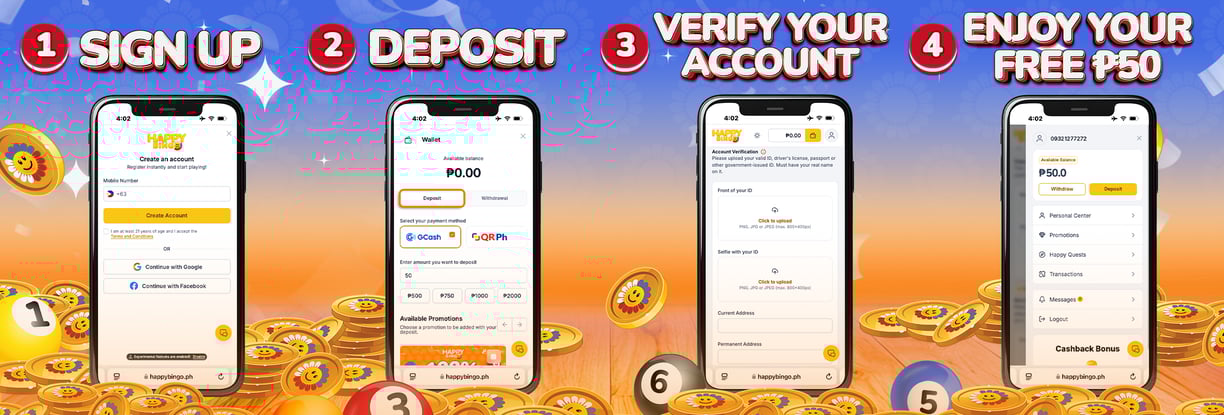 Bisitahin and HappyBingo website, mag sign-up, at gawin ang una mong pag deposito.